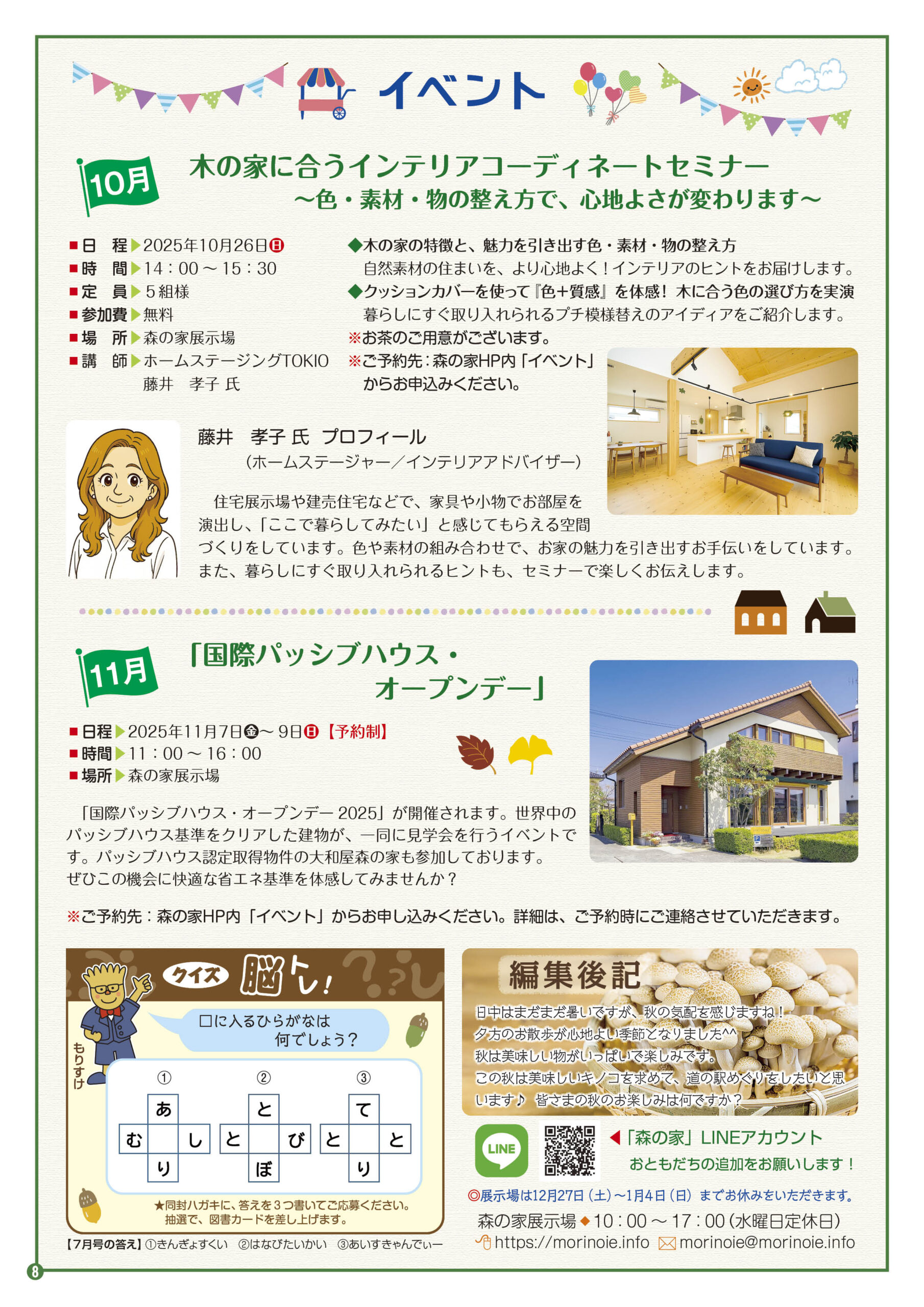 ◇11月7(金).8(土).9(日)には『国際パッシブハウス・オープンデー2025』 が開催されますので、ぜひこの機会に快適な省エネ基準をご体感ください!