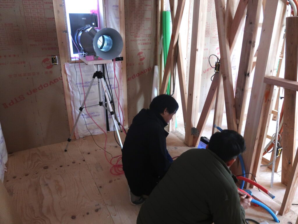 快適なecoハウスをつくるには、断熱・気密・窓(日射取得と遮蔽)の3つがポイントです。性能を良くし、少ないエネルギー消費で快適に暮らせるように、燃費のシミュレーション確認をきっちりと行うことが大切です。Ua値、Q値、ηA値、C値etc.住宅性能を表す指標があります。共通する事は「数値が小さいほど温熱性能が良い」ことです。特に、家の気密性を示す指標C値は、計算では算出できない数値ですので、現場「気密測定」で確認することが重要です。