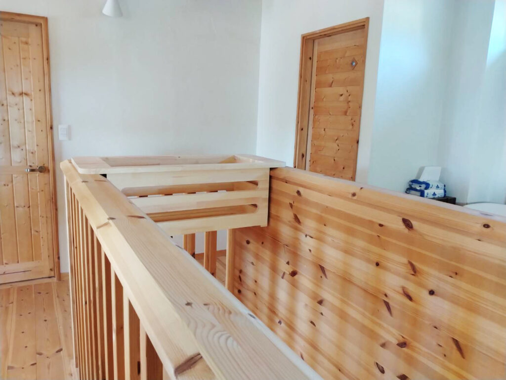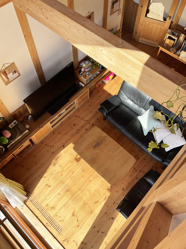 そんなん時、森の家のオーナー様は、吹抜けや階段上の手すりを上手に使って