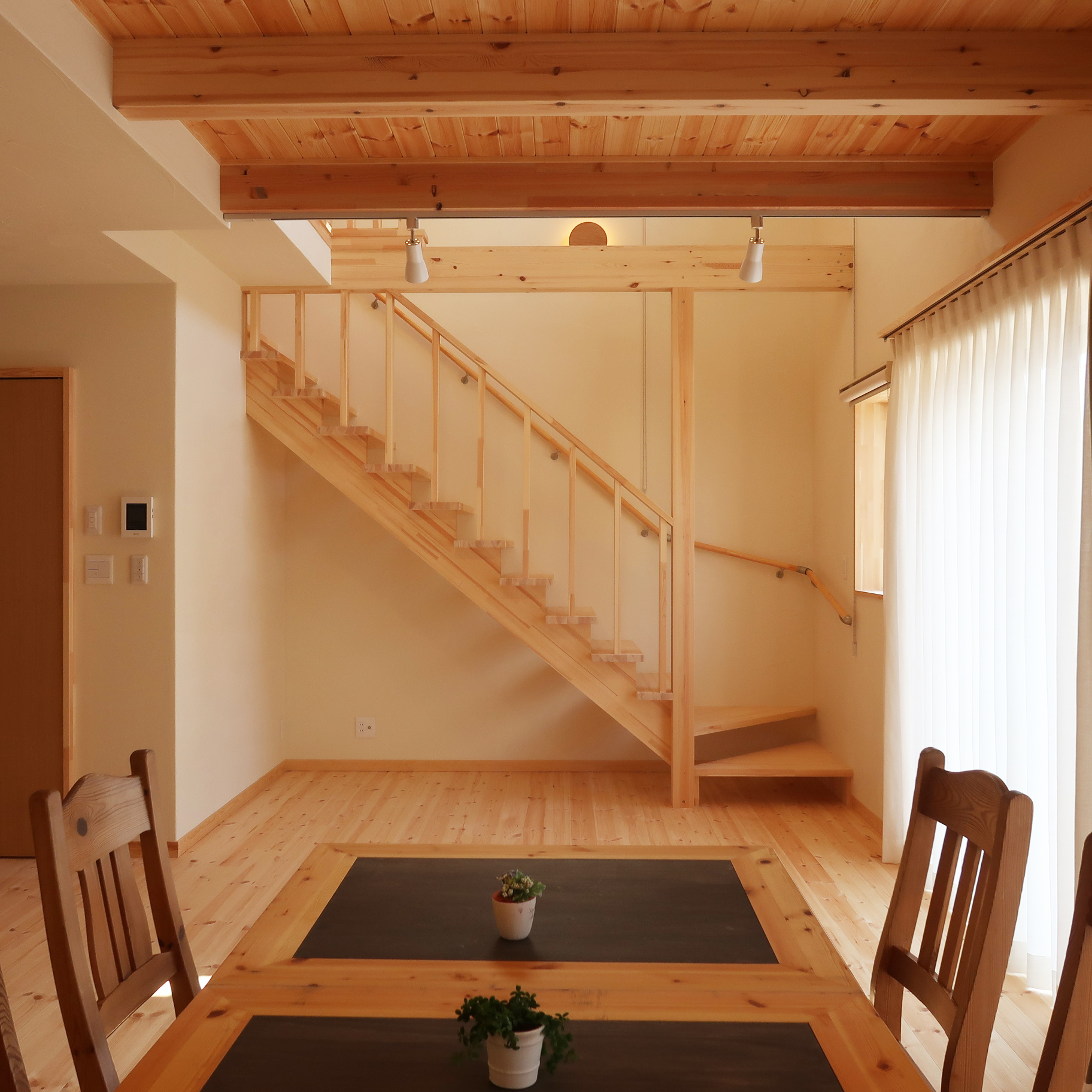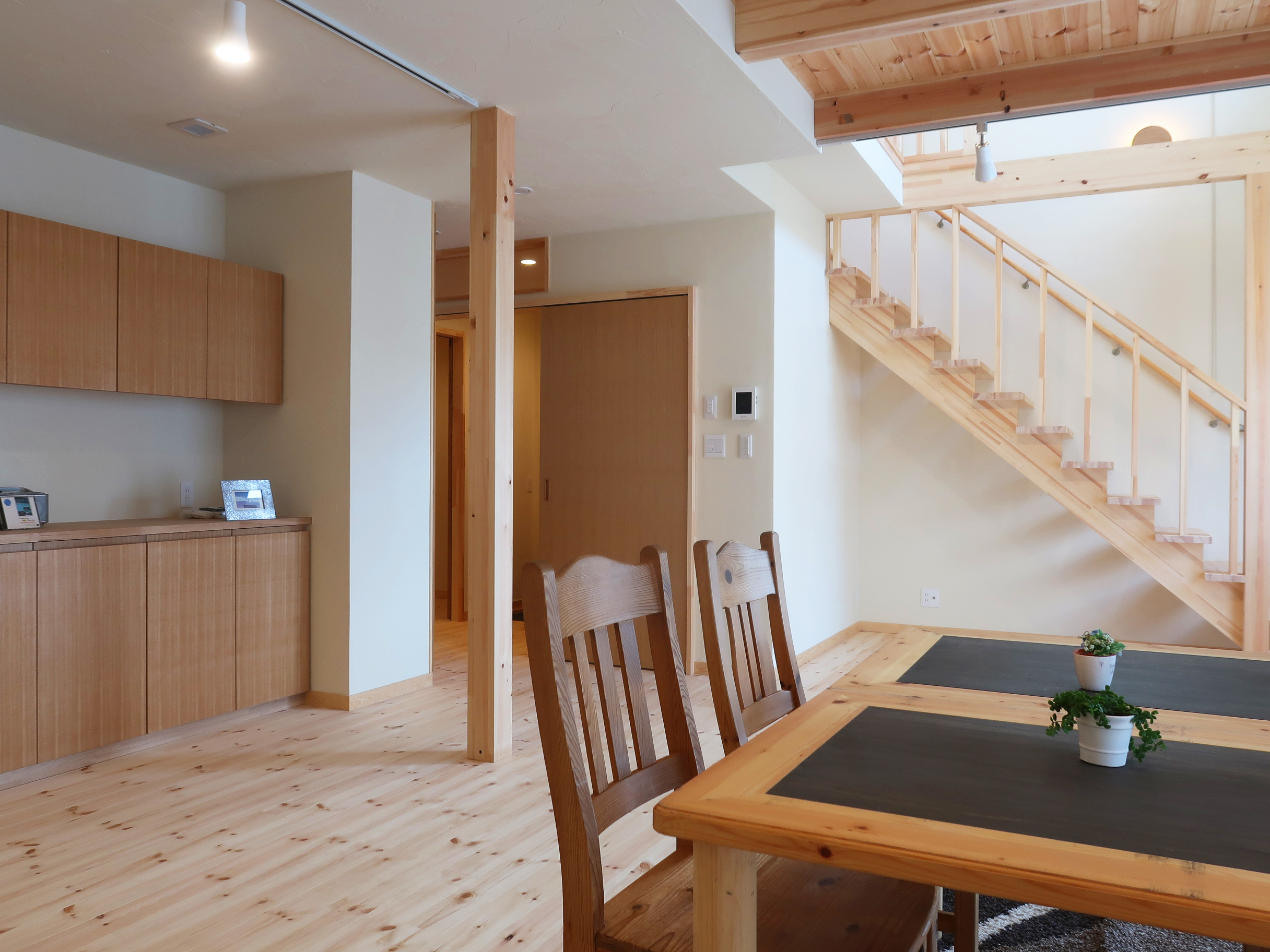 木の温もりと光に包まれた空間で、電気も暮らしも自立する安心の住まいです。
